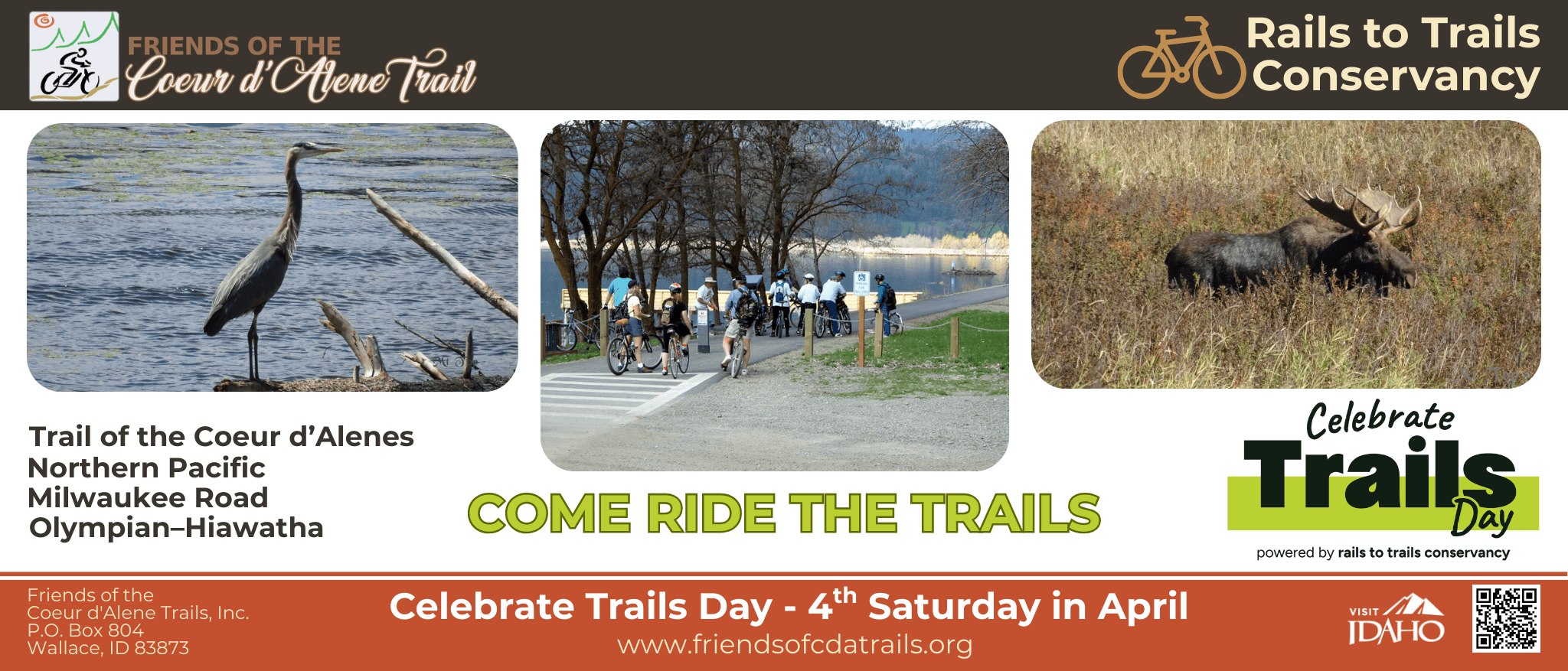 Join Friends of the Coeur d’Alene Trails for Celebrate Trails Day 2026, part of the nationwide celebration led by Rails-to-Trails Conservancy to honor the incredible trail systems that connect our communities.
